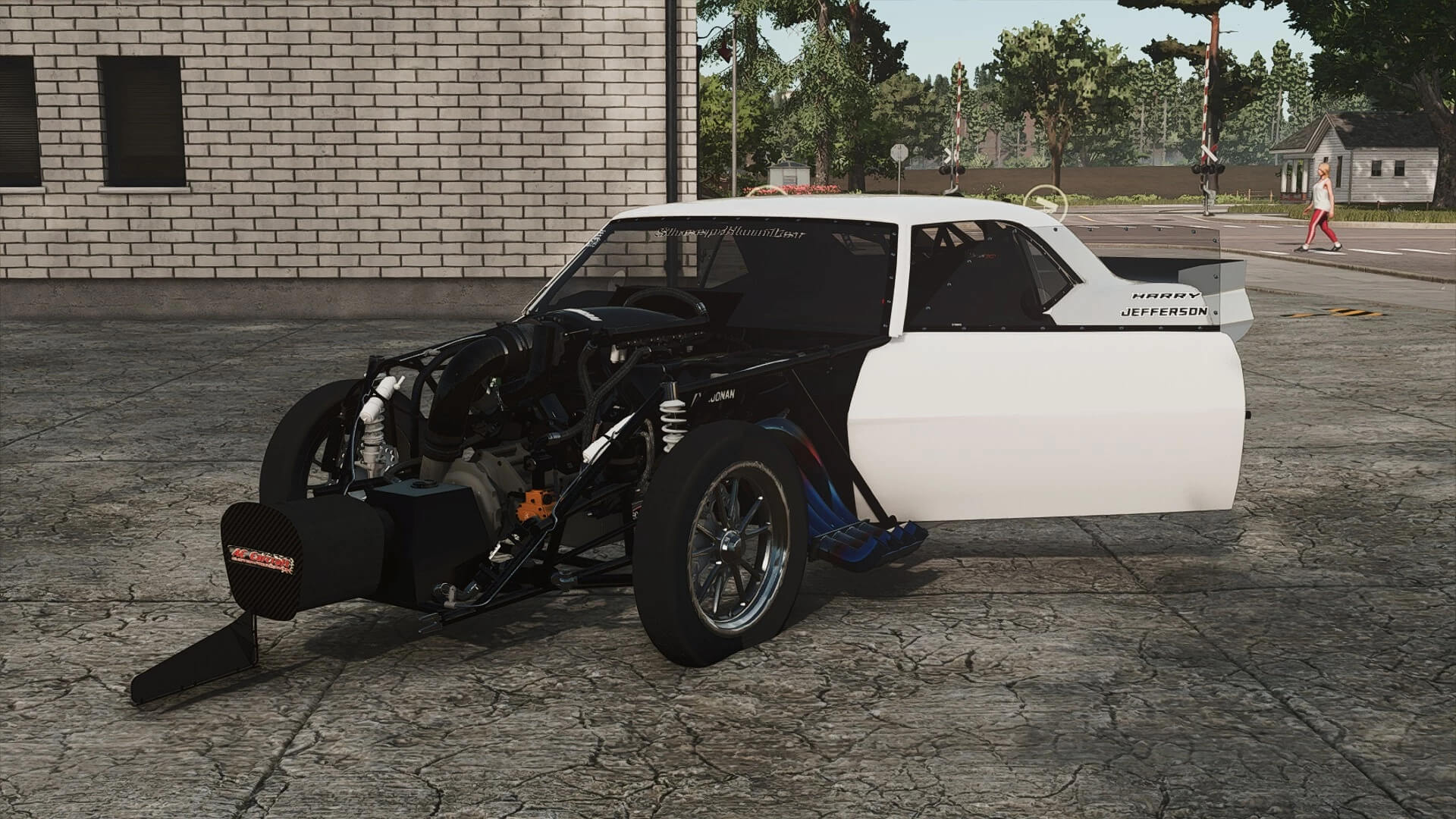 Wheelie bars, parachute, and a stripped interior make it all business.