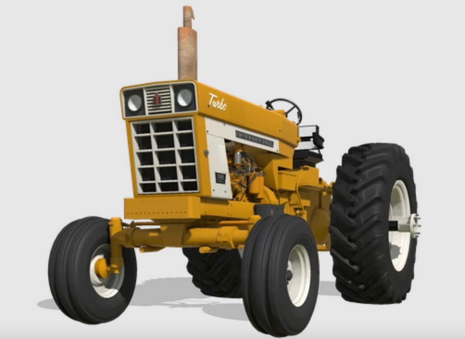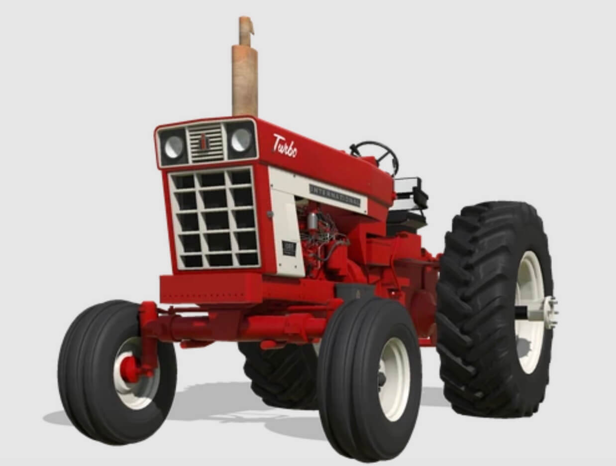 The International Harvester Farmall 1066 was made by International Harvester from 1971 to 1976. The 1066 has a six-cylinder diesel engine and about 105 drawbar and 125 PTO horsepower. Ours has been both engine power and speed (33 mph) increased for todays demanding farming tasks. The 1066 is significant for its popularity, with over 50,000 units having been built in its six-year run. There were two variations of the 1066, those being the more standard turbocharged 1066, and the Hydrostatic transmission options, We have made the Turbo variant along with the industrial version. both detailed by their respective hood decals and or color. The hydrostatic version is described to have had greatly less power than the more standard turbo variation 1066.