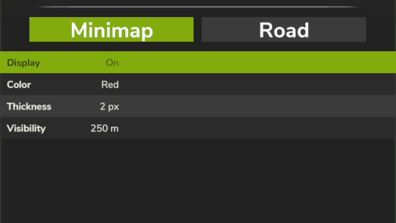 Display: If you only want to see the lines on the road, you can disable them for the minimap here.