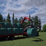 It is equipped with a crane to load and transport bales or pallets with a single vehicle.