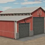 Basic wooden garage in red color where you can store machines or crops.