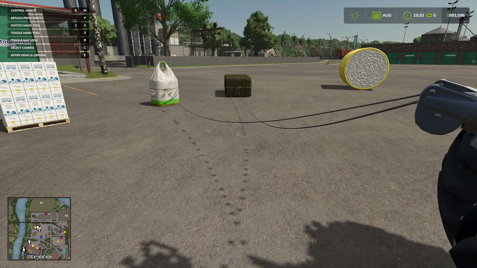 When dragging the rope, it may knock objects even large tractors around like they are weightless. This is just something to do with the vanilla physics and nothing directly related to this mod.
