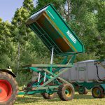 Trailer designed for unloading grapes and olives onto other trailers thanks to its chassis lifting system.