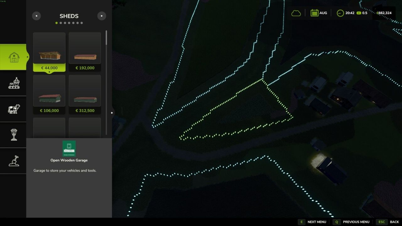 Highlights farmland borders in the building placement menu and optionally during normal gameplay.
