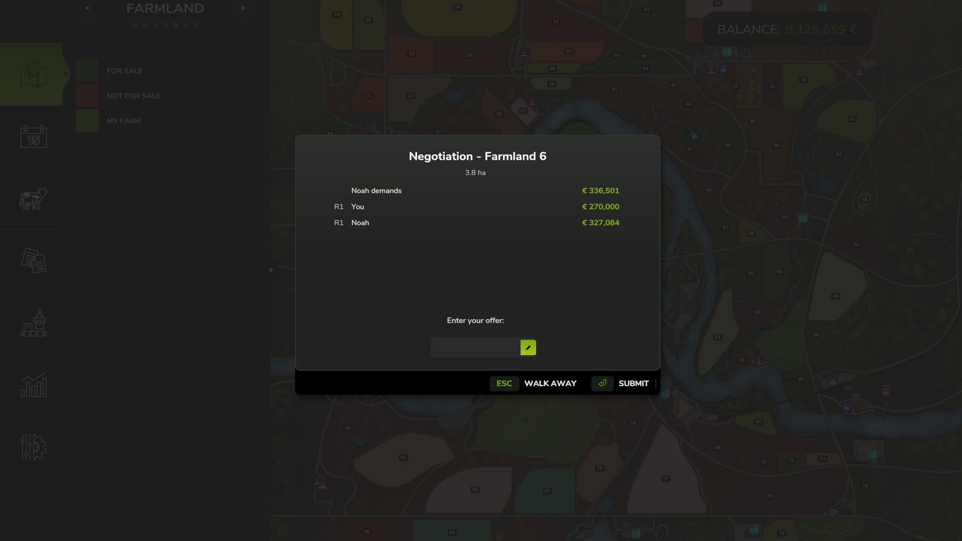 – Negotiation system – buy and sell farmland through offers and counter-offers