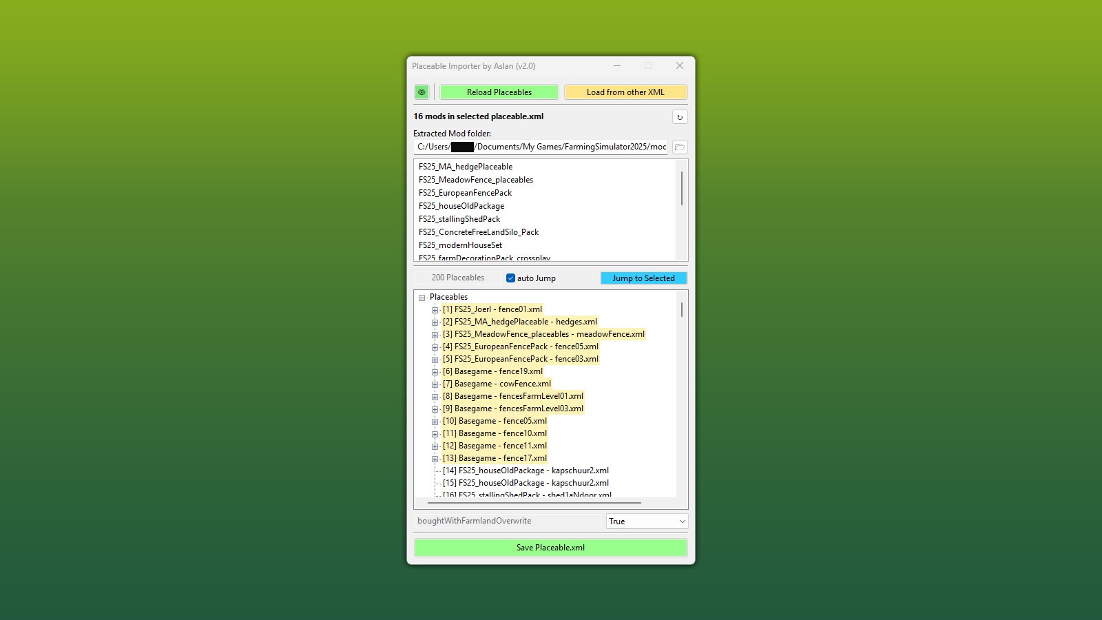Copying/cloning existing placeables is now possible – the cloned placeable inherits all settings from the original Loading a different „placeable.xml” is now possible (e.g. directly from a savegame); it is converted on the fly and written to the map’s „placeable.xml” via the Save button