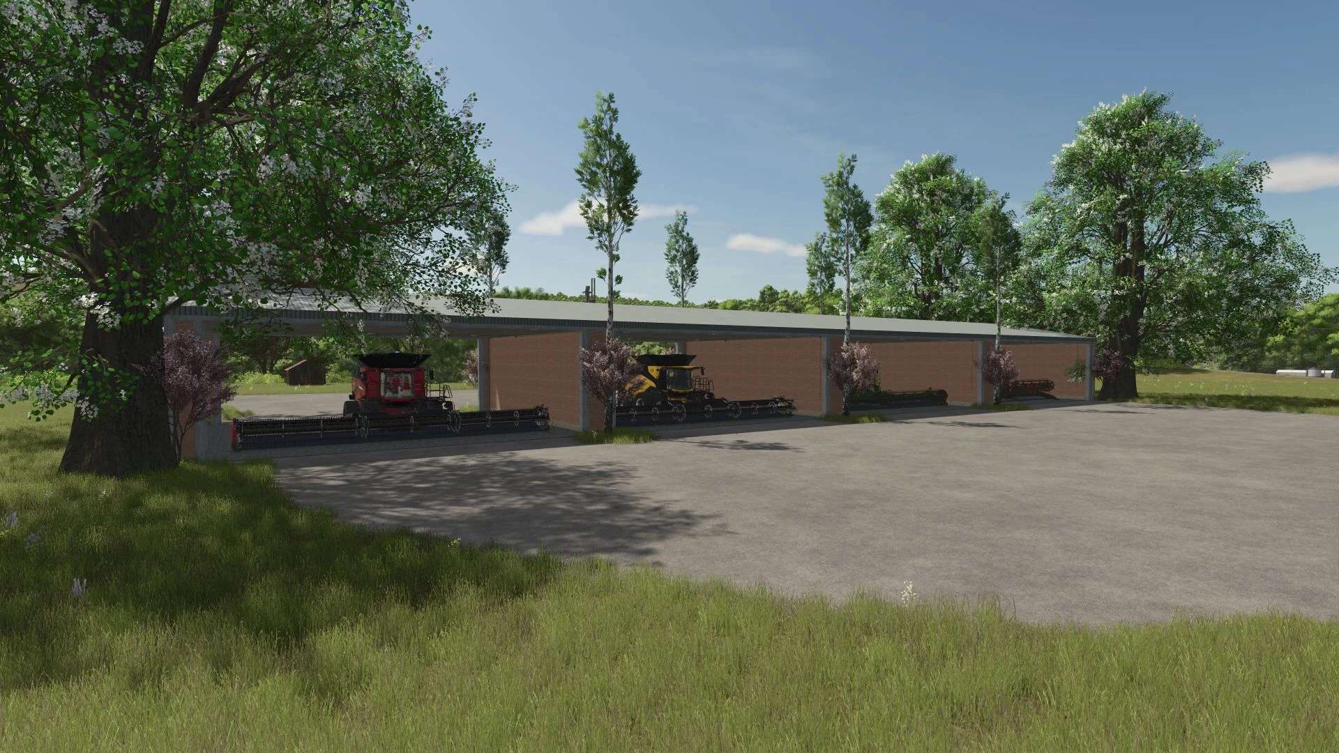 The garage consists of four sections for four combines.