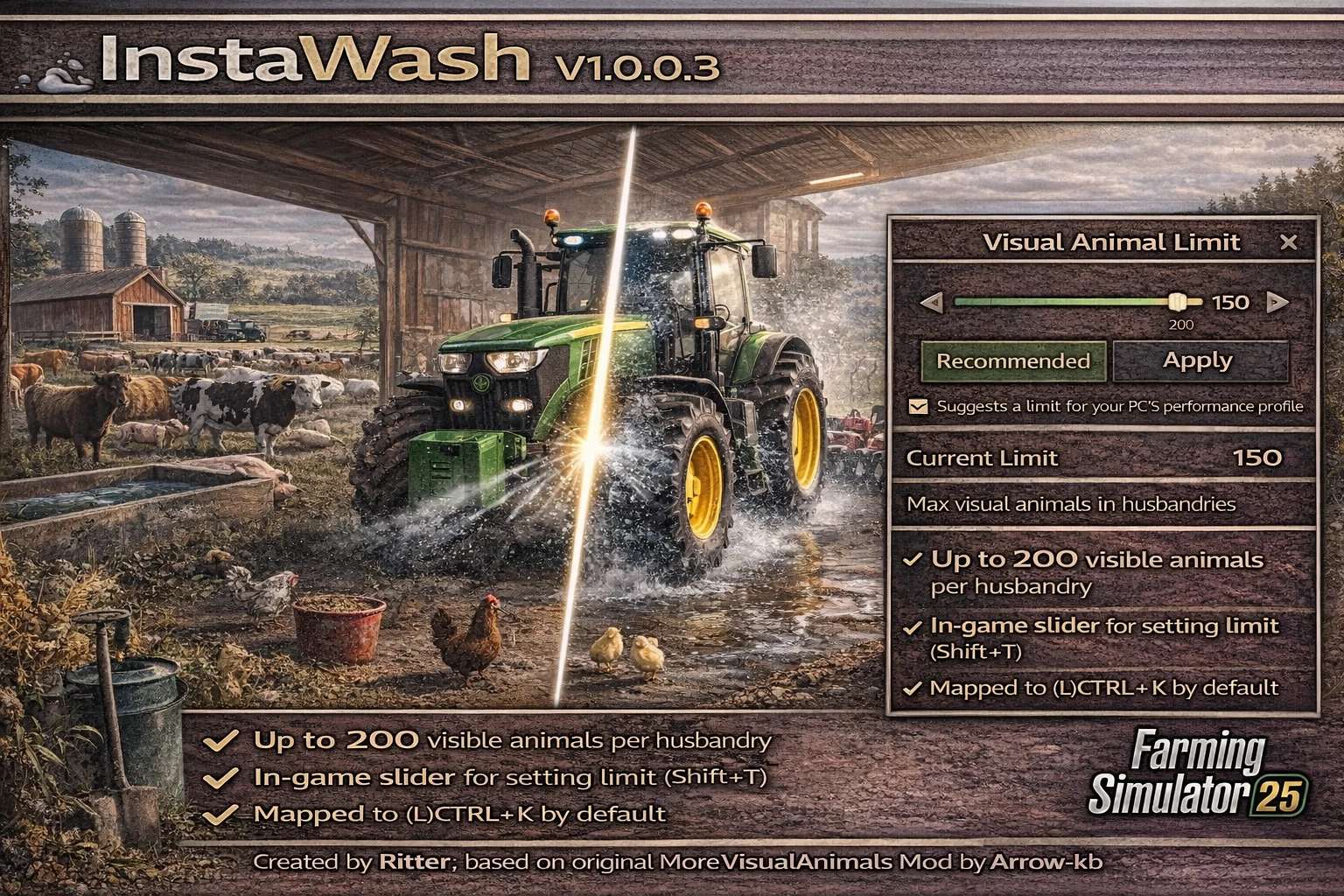 Farming Simulator 25 supports game modding for PC, Xbox, or PS5. FS25 Mod may change your game from small to complete changes. You can create a Farming Simulator 25 mod file and share it with our community. When is a good time to try Farming Simulator 25 mods? We recommend playing a game with these FS25 mods after you finish the Farming Simulator 25 starting pack and are bored with the game basics. So it's time to try new machines, such as harvesters or tractors, which are not included in the basic game version.