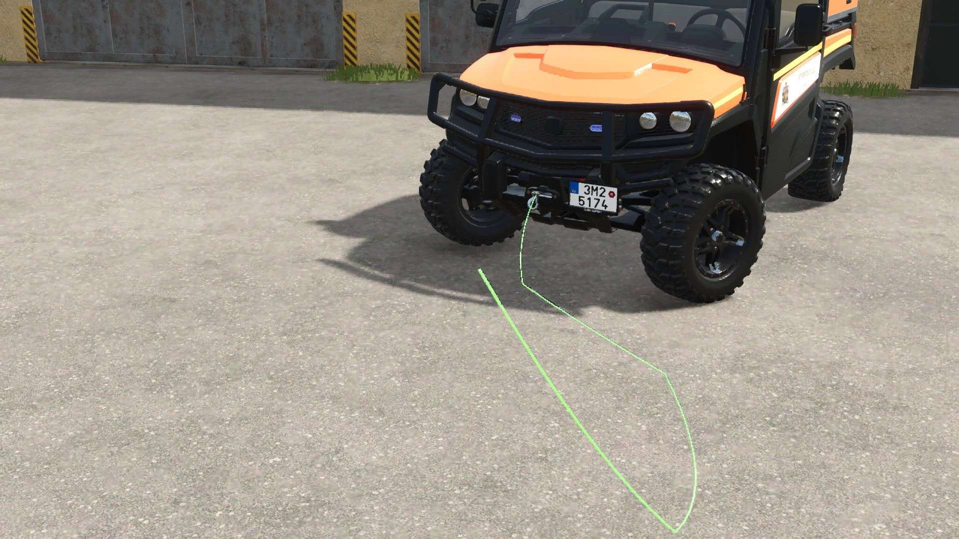 The ATV has the ability to store a chainsaw in the rear compartment, tow objects with a winch, and wash vehicles with a high-pressure pump.