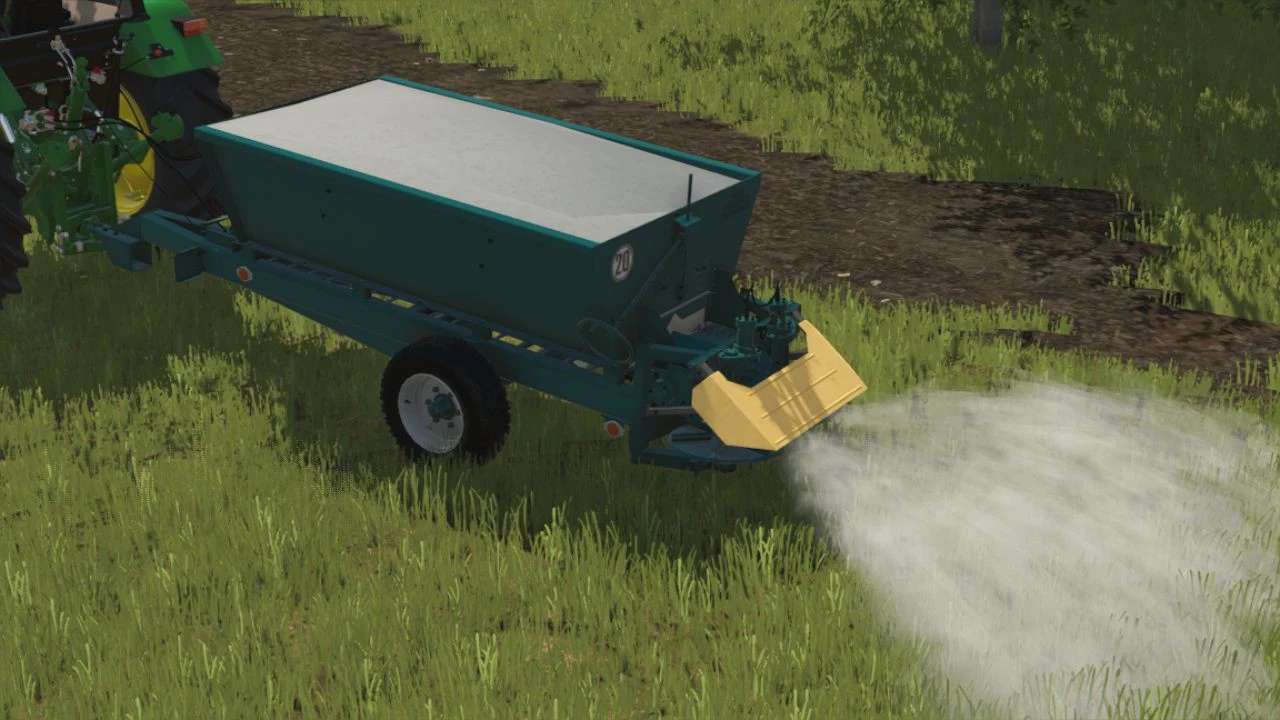 The spreader uses materials from FS25