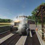 Car wash bay with gas station and workshop.