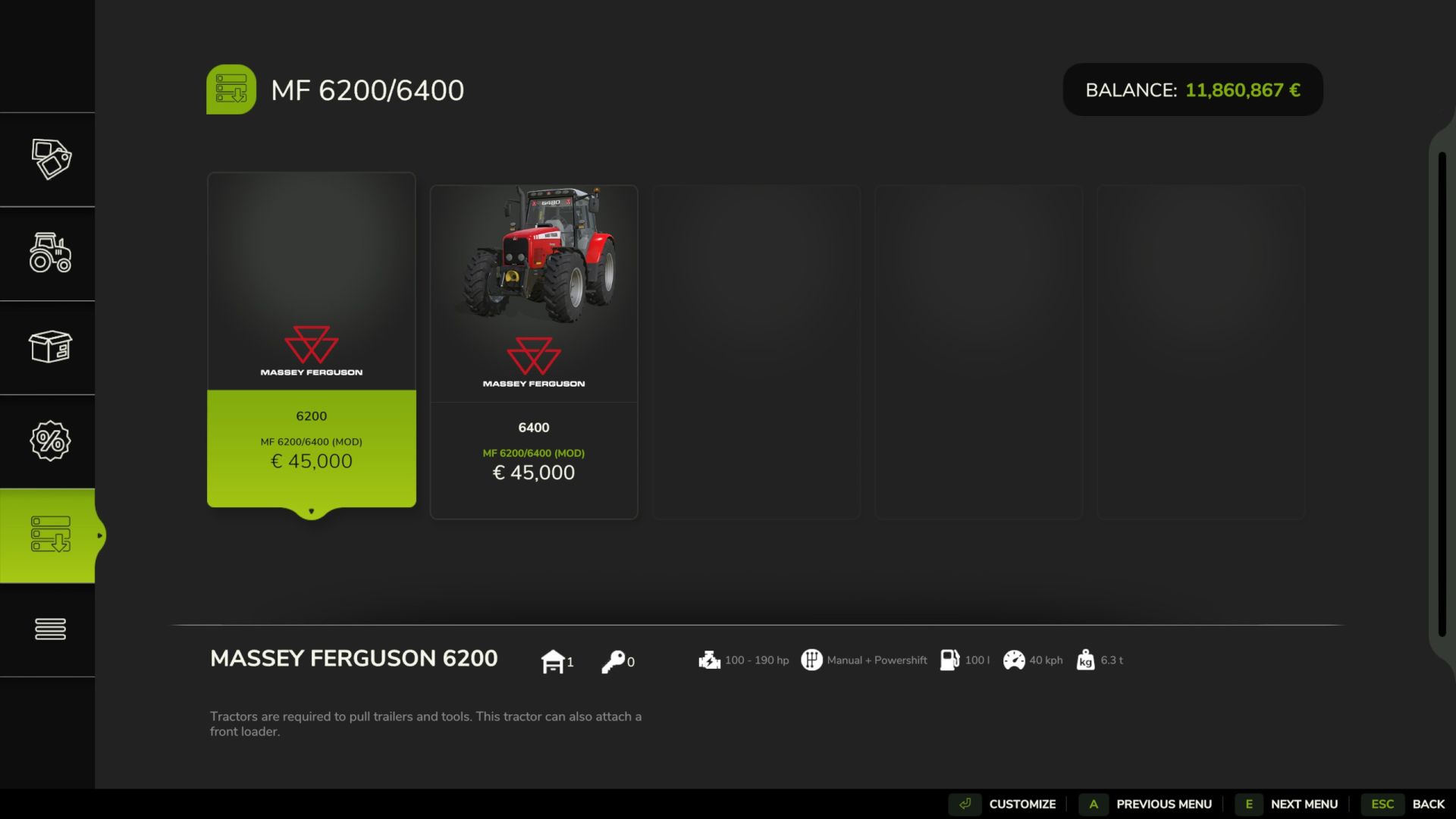 The Massey 6200-6400 is an old tractor that was part of the Massey Ferguson Line-up from 1999 to 2004. It’s perky 6.0 L6 Perkins diesel engine was enough to output from 100 to 155hp and up to 655nm of torque !