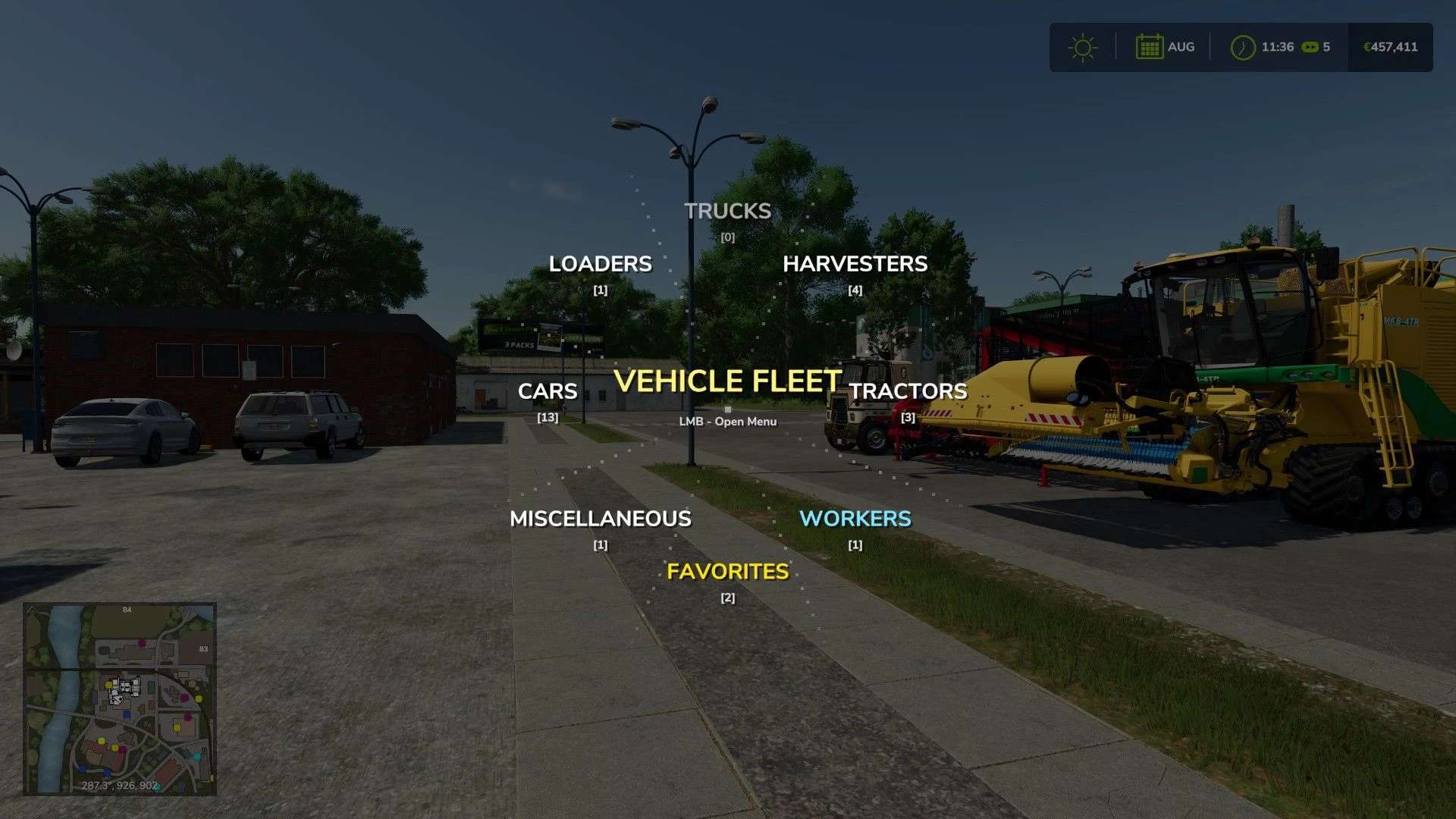 This mod replaces the standard sequential vehicle switching with an animated radial menu. By holding the Tab key, a graphical interface appears where all vehicles are automatically organized into categories: tractors, harvesters, trucks, loaders, and cars.