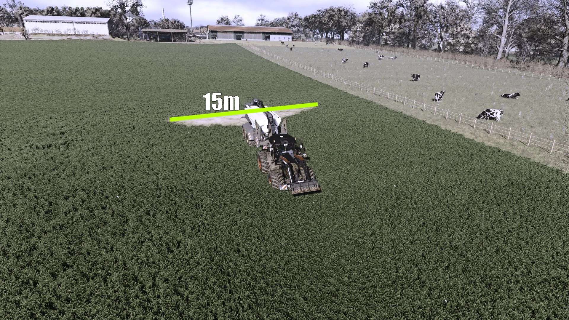 Working width: 15m-42m (lime spreading was extended from 15m to 42m with intermediate width changes)