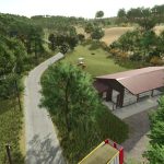 For those starting with the “Start from scratch” preset, there is the option to “buy” the entire area outside the 98 fields for €0. I have placed the corresponding field “100” in the wooded area between the cowshed and the limestone crusher.