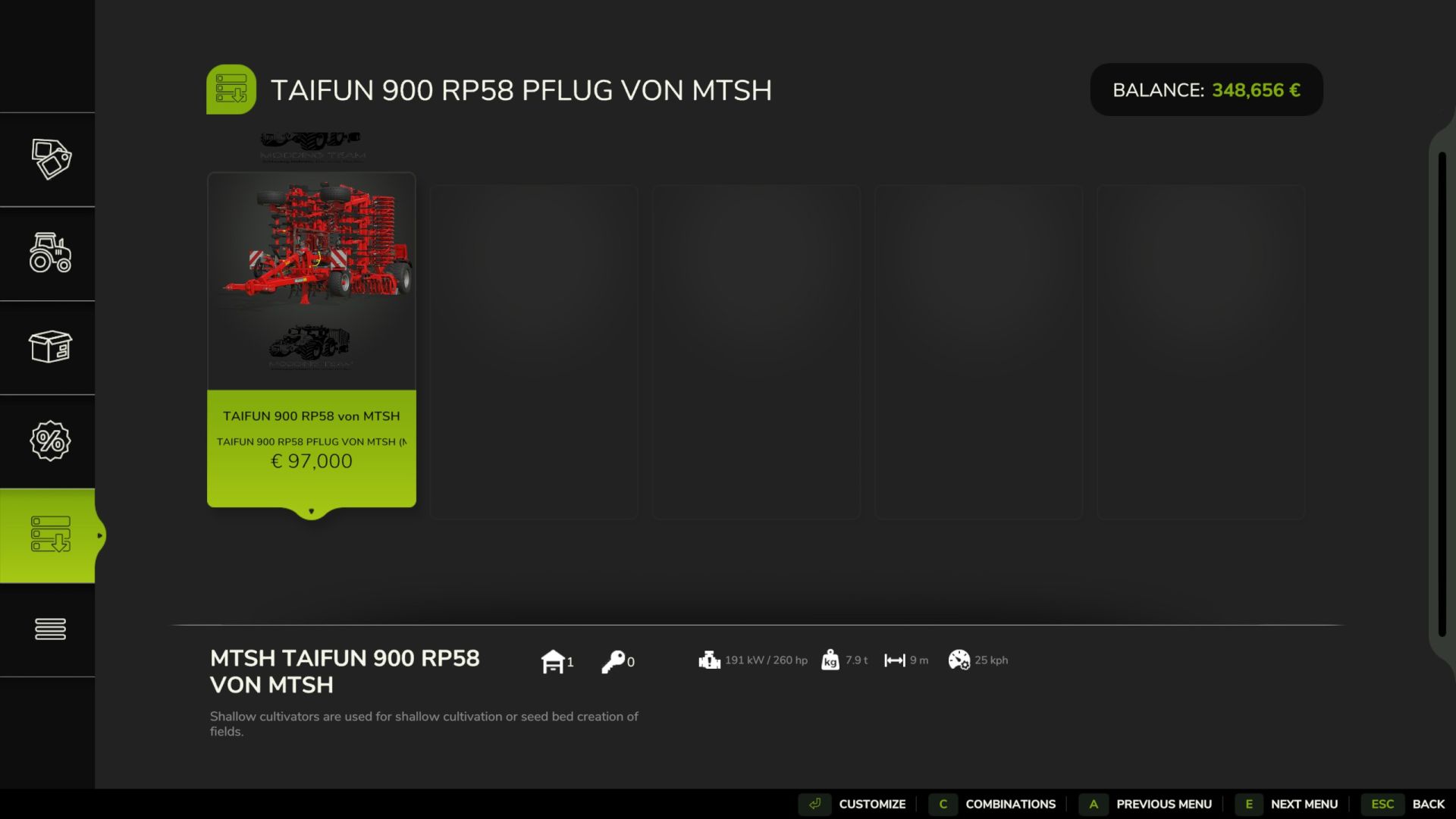 – Working width 9 meters – Working speed 25 km/h