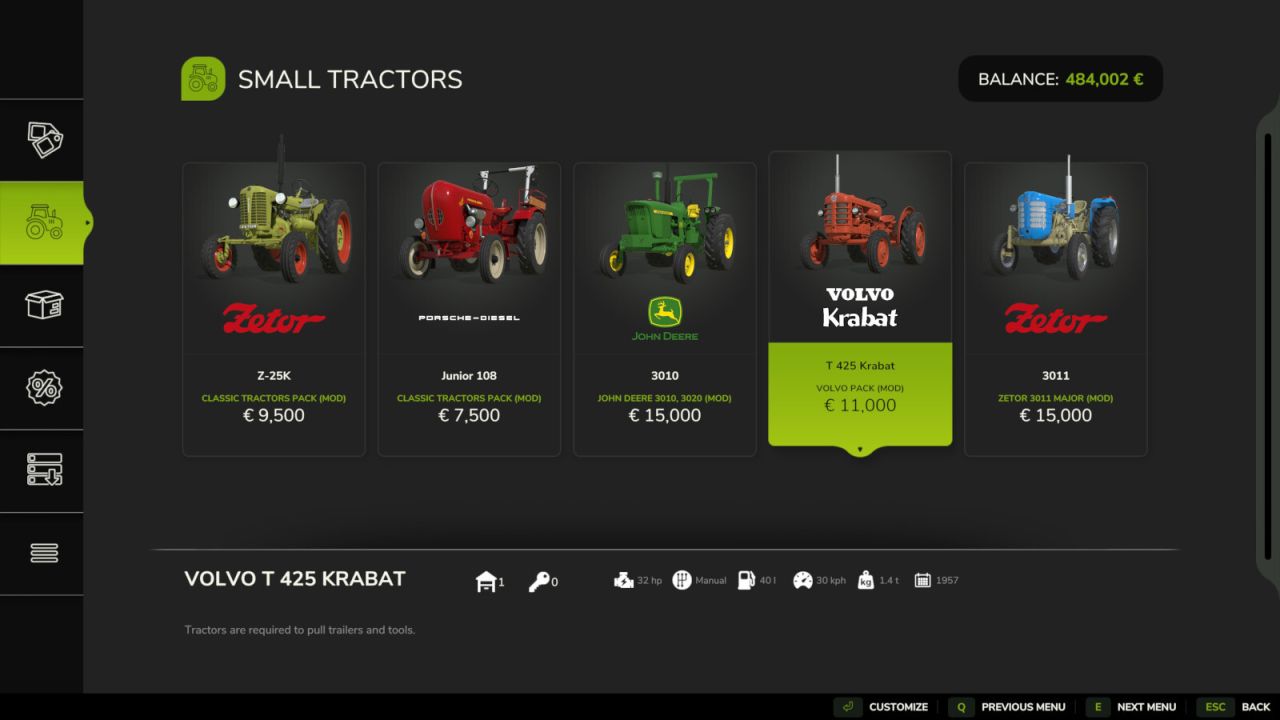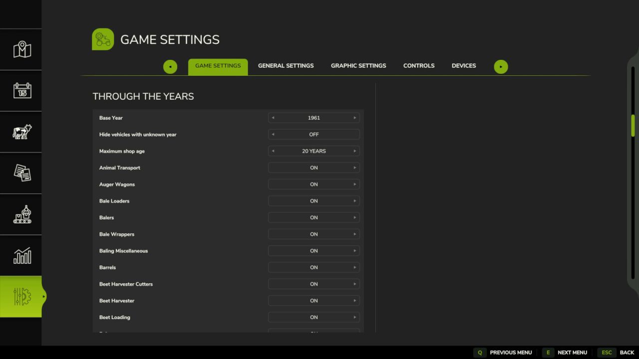 With heavy customization for your specific wants, this mod will restrict your buying options to the vehicles available at the time of your game. With a starting year as low as 1950, you can work your way from tractors with less than 50 horsepower and plows with 2 furrows to the new and powerful machinery of the modern agricultural world.